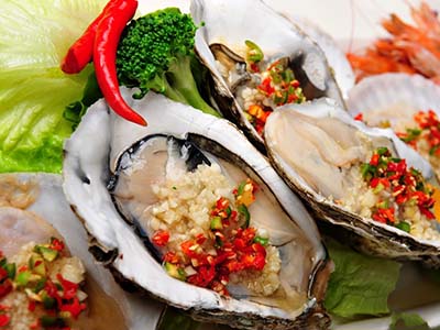 牡蛎又叫生蚝,澳大利亚的牡蛎又大又干净,价格便宜。生蚝可以生吃,也可以蒸着吃。有很多香港人会专门去澳洲品尝这种美食,并且认为这个美食值机票的价格。顾客可以看着营业员开盖后,放上鲜柠檬汁即可食用,非常美味。生蚝有细腻肌肤、美容颜和降血压和滋阴养血、健身状体等多种功效,因而被视为最美味的海珍和健美强身之物。